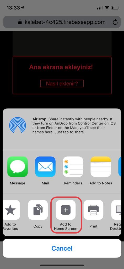 Açılan adreste İOS için "Paylaş" butonuna basın.